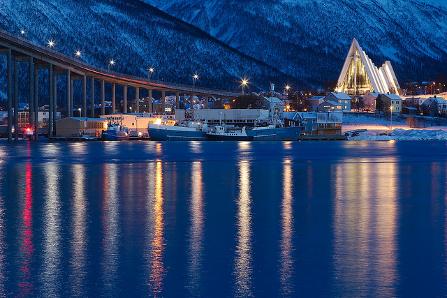 At about 10:45 we arrived in the little village of Risøyhamn, with a population of 211. Risøhamn is connected by a beautiful bridge to the island of Andøya, which is closest to some of the best fishing banks on this coast. The fish are transported to Risøyhamn by truck and then transferred to the Hurtigruten ships for delivery.